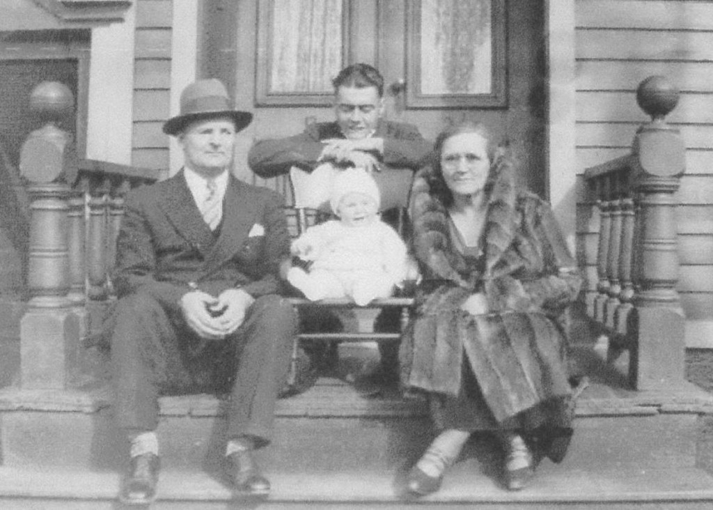Ellen Married John Aunchman in the Bronx in 1906. They had three children; Gladys, Vincent, and Eileen, who died at a young age. Below is a photo of John Aunchman and Ellen McCauley Aunchman and between them I believe is Bernard McCauley (III) and Bernard (IV). The photo would have been taken at their Nelson Avenue home in the city of Rensselaer and I also suggest it was taken in the spring of 1936, about six months after Bernard (IV)’s birth in October 1934.