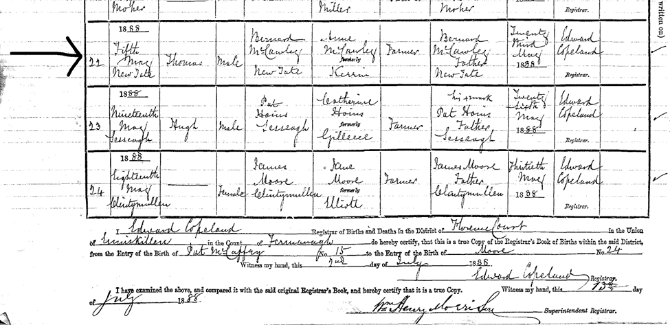Below is the Birth record for Thomas McCauley.