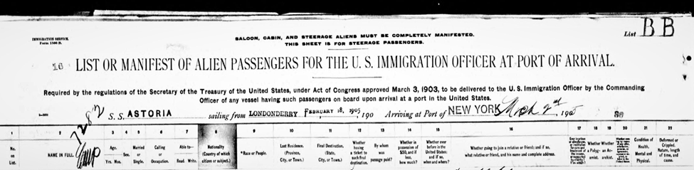 ABOVE: February 18, 1905, Travel Manifest heading. Below Agnes’s manifest entry 1905.