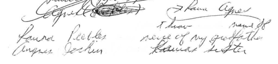 The transcription errors are that the name Aunchman is spelled Annchman. The family lived at 153rd Street according to the 1910 Censes, but the paper indicates the address is 163rd street. The fact that Gladys was picked up by her aunt Laura Peebles is significant as my father mentions Laura Peebles in his family genealogy notes. His hand-written note is below. Who was Laura Peebles? I thought she may have been a McCauley, but this does not hold up when you examine the McCauley trees and there are no children named Laura. Instead, I suspect that she is the niece of Bernard’s McCauley (II)’s wife Susan Reilly McCauley. That theory will need to be verified.