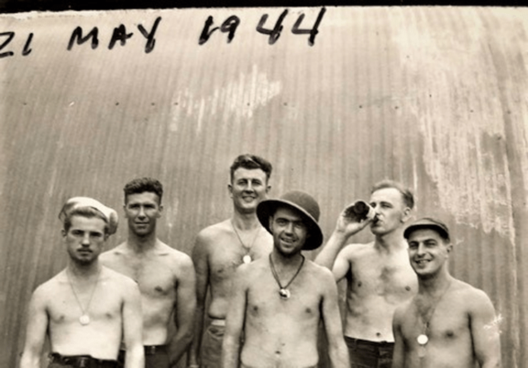 Bernard the III served in the Navy during WWII from July 1943 until November 1945. He was a Machinist Mate Second class and served with the Sea Bees in the Philippines. Below is a photo of him with his unit mates. Bernard McCauley III is in the center of the photo wearing a pith helmet.