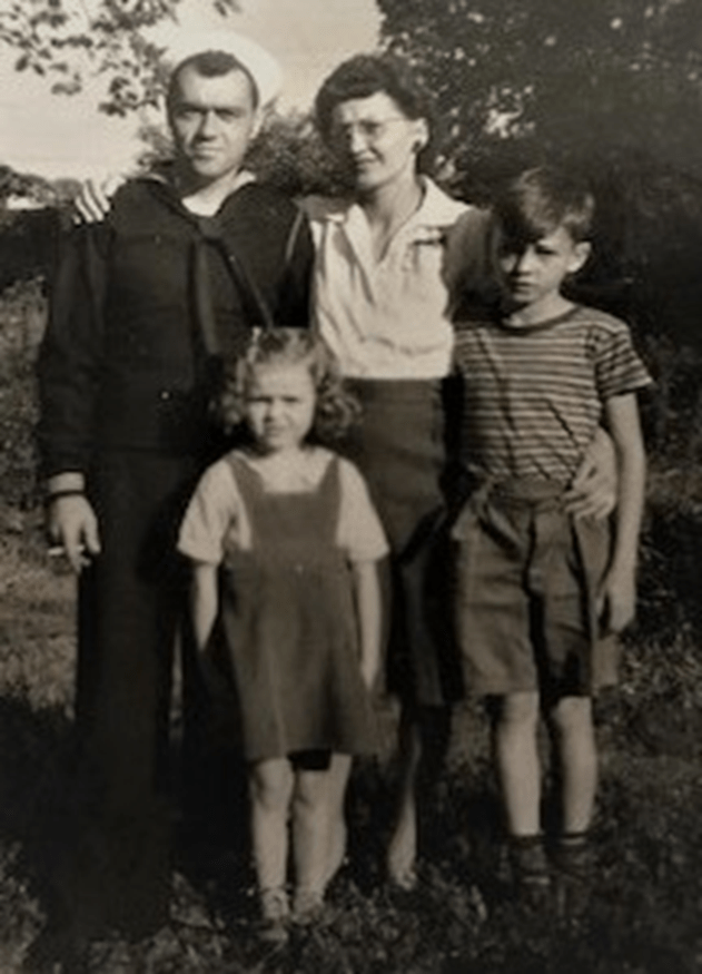 Bernard McCauley (III), Anna McCauley, Bernard McCauley (IV) and Patricia McCauley are captured in top photo above. This photo taken presumably in July 1943 before Bernard (III) left for service. The next photo down was shared with me by Kathleen Matthews and there is a date of 1943 on the back. The third one above was also shared by Kathleen Matthews and does not have a day, but Bernard and Patricia both look a year or so older.