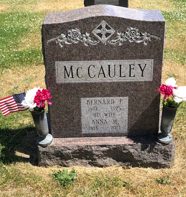 4) The headstone of Bernard and Anna McCauley, Holy Sepulcher Cemetery in Rensselaer, NY.