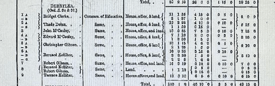 Below is a printed abstract from the Griffiths Valuation Book. As both documents show, Edward’s land is associated with sections 4A and 4B on the survey map.